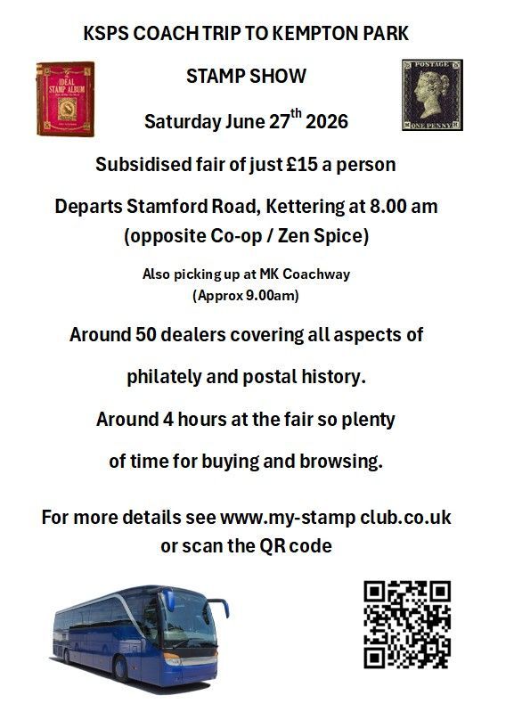 Along with the "Mug for Members", presented at the January 2024 meeting, the April stamp fair saw the unveiling of The Kettering Stamp & Philatelic Society Silver Jubilee Booklet. This has been produced to celebrate our 25 years of running as an independent society. The booklet outlines the history behind the formation of the Society and how it developed as well as prominent figures, events and activities that occur regularly. Finally there are articles written by members on their own philatelic interests.